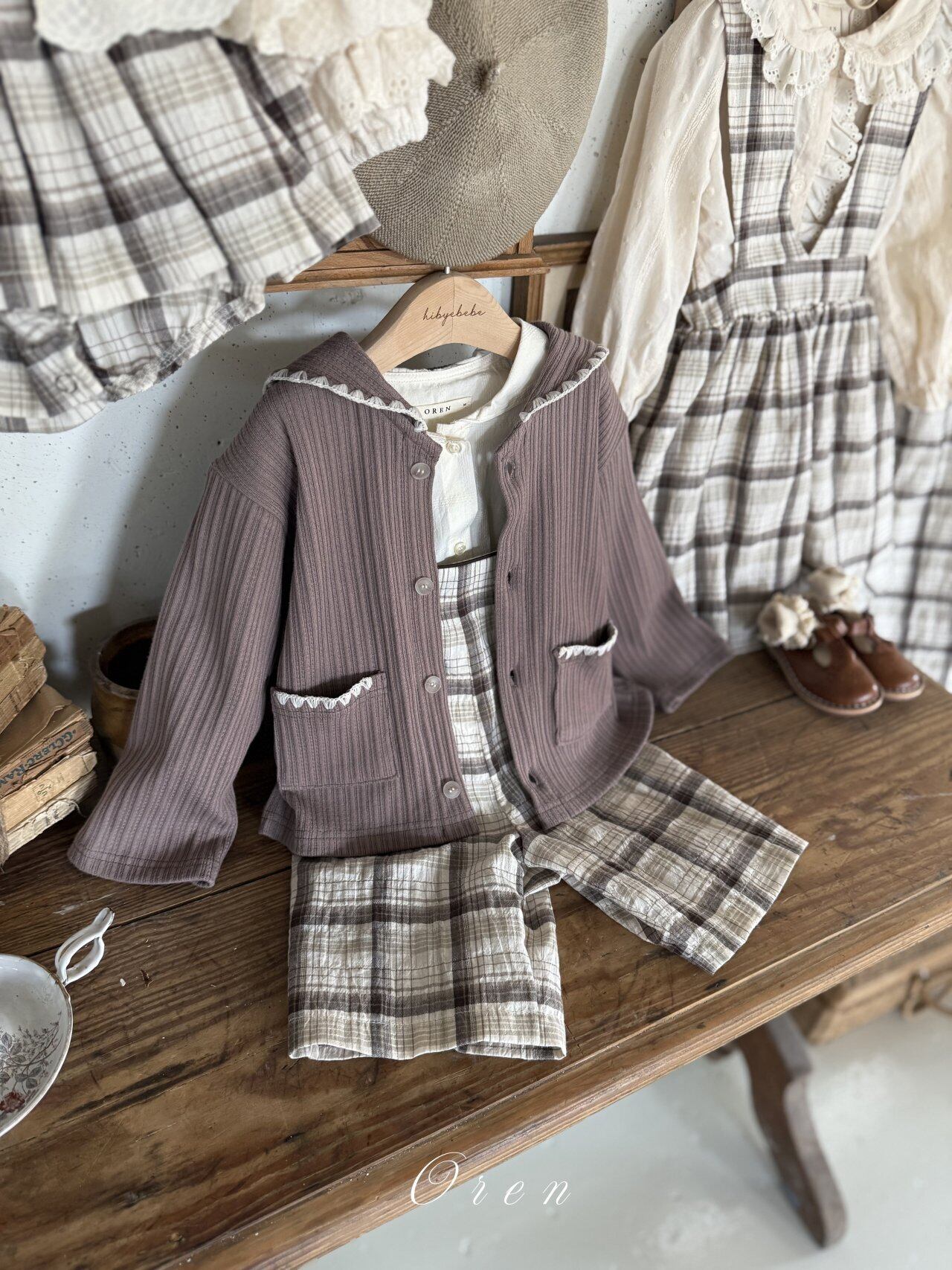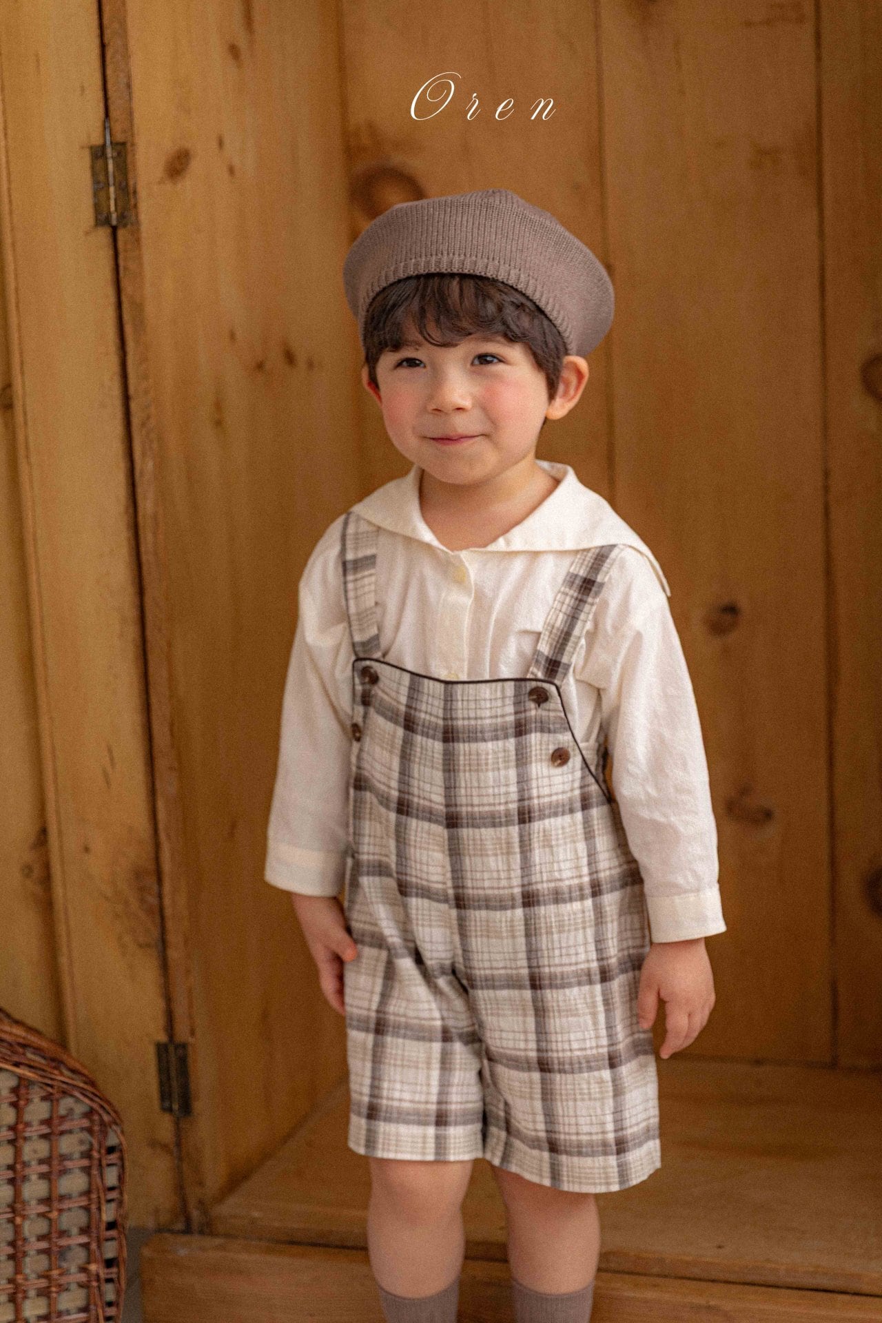 【即納】Oren / kids) check suspender pants